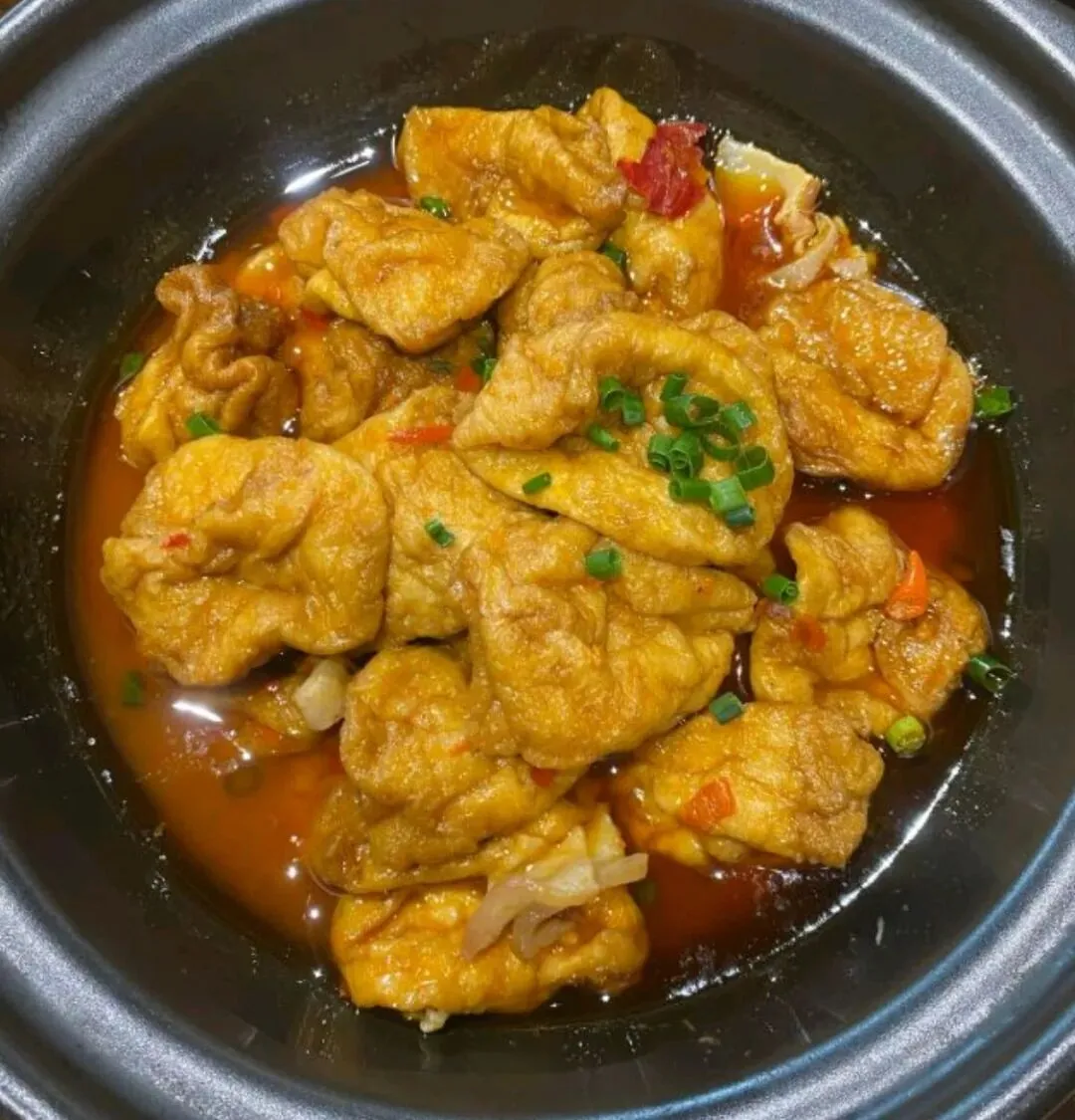 平江油豆腐很惊喜,是地道的香辣口,每一块都吸饱了汤汁,咬下去的瞬间,汤汁直接在口腔里爆开,软嫩又入味,一口一块,特别过瘾。