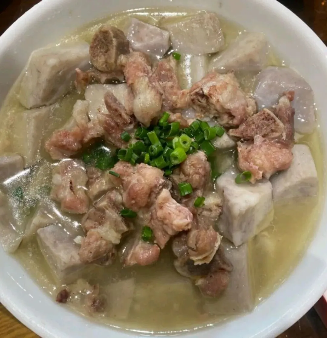 香芋蒸排骨是温柔派的好吃。芋头蒸得特别绵密,粉糯入味,连排骨都蒸得软烂脱骨,老人小孩都能轻松咬动,我自己就多夹了好几块芋头。