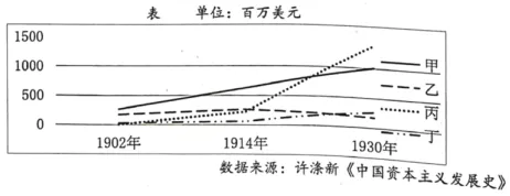 7. 下表反映了20世纪上半叶各国在华投资情况,其中丙是( )