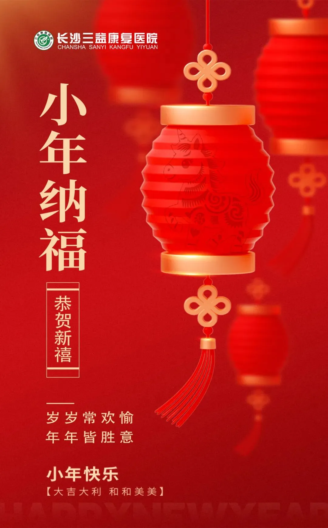长沙三益康复医院祝大家小年安康,快乐无限!