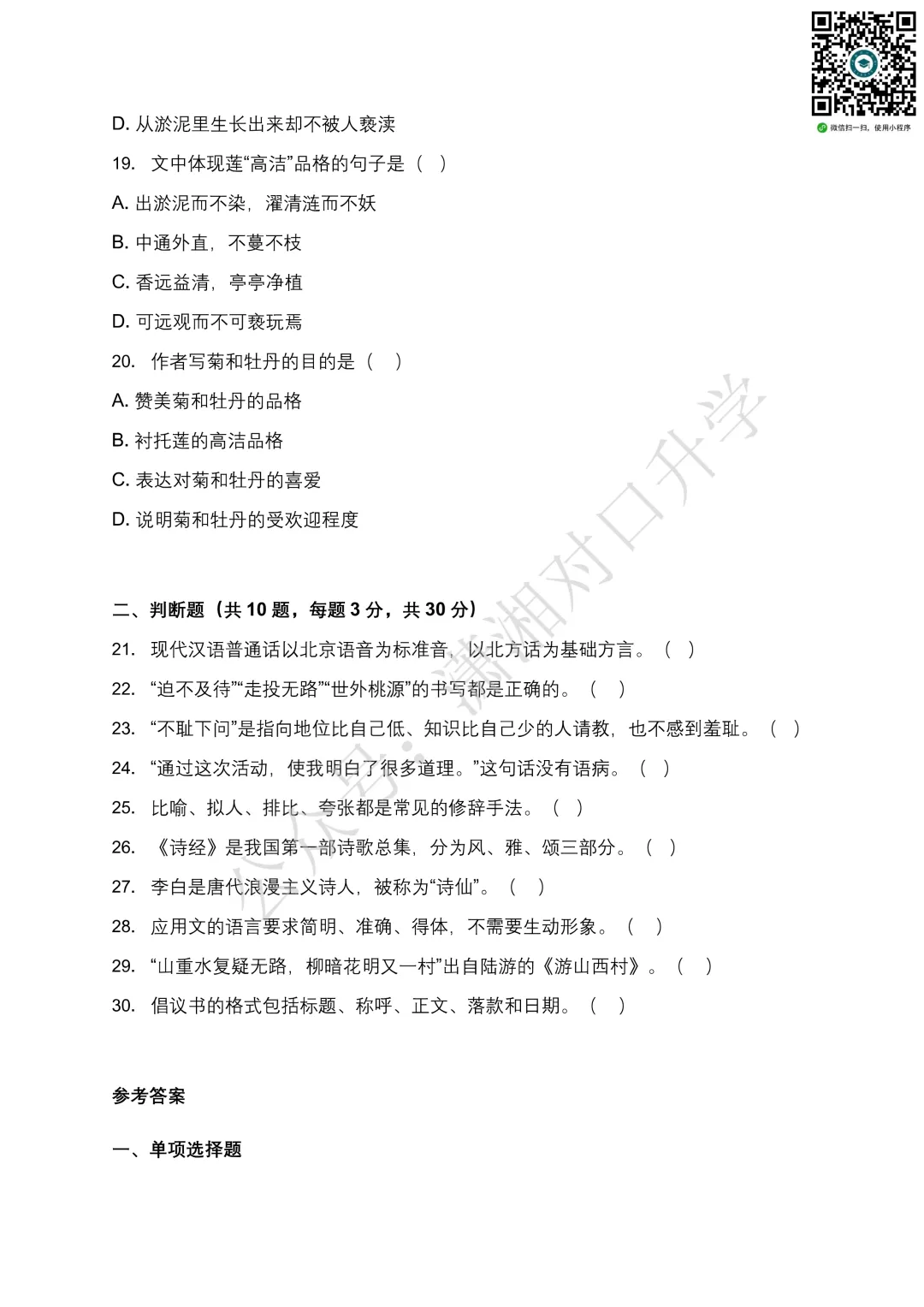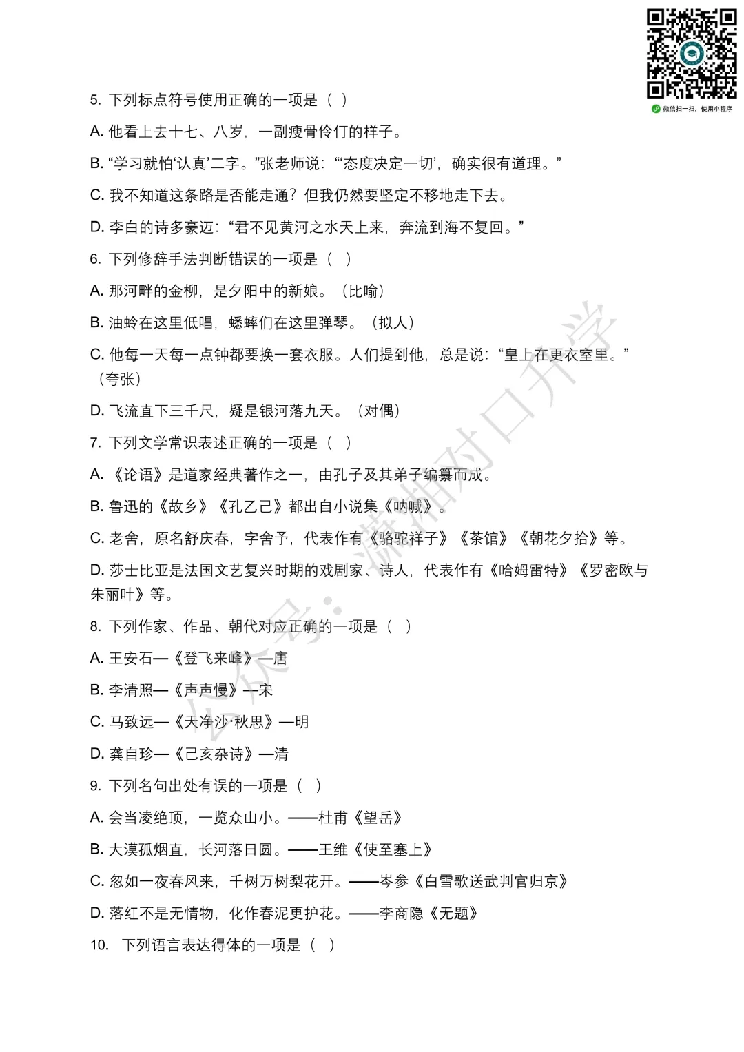 更多试卷题库请点击下方小程序刷题: