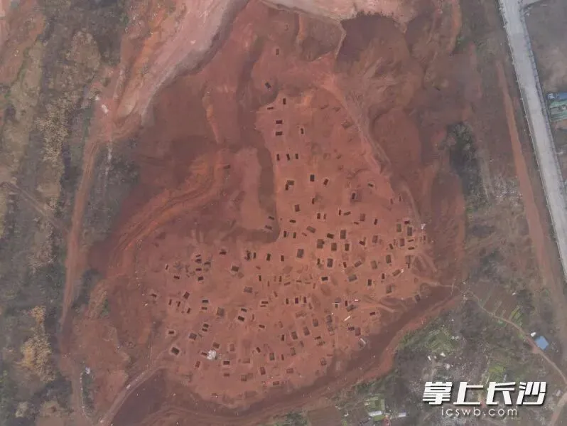 望城坟山坡墓园考古航拍图。均为长沙晚报通讯员 郑广供图