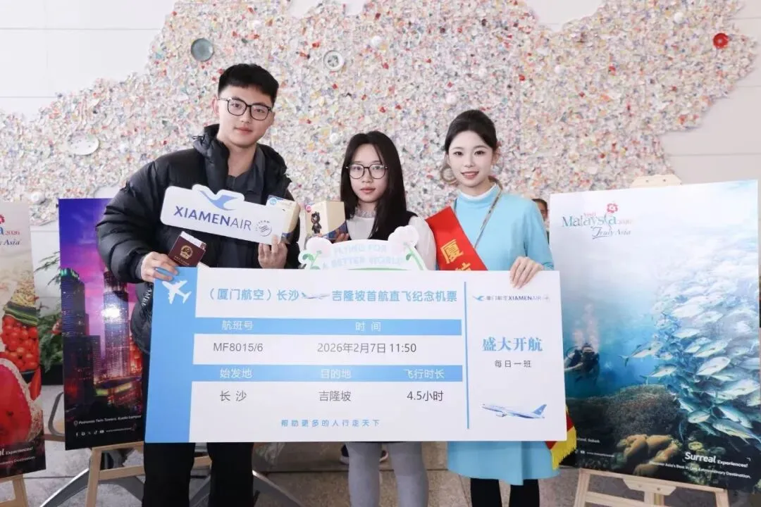 2月7日,厦航湖南分公司青年团队积极响应春运保障号召,圆满完成长沙至曼谷、吉隆坡两条国际直飞航线的首航任务。这是厦航首次开通由长沙直飞上述两地的国际航线,也为湖南与东盟国家间的交流搭建起更便捷的空中桥梁。