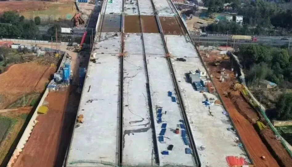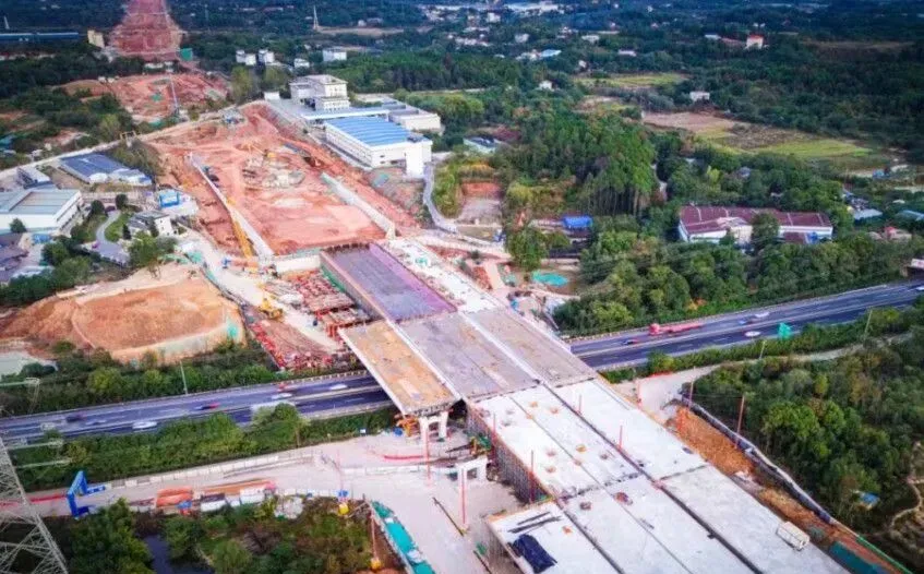 长株跨线桥下方跨越长株高速,上方悬挂有50万伏高压线,施工高峰期更是有近200名作业人员、多台大型吊车同步交叉作业,安全管控与施工组织难度极大。面对复杂环境、交叉作业密集、技术标准高等多重挑战,项目组坚持以精细化管理破解施工难题,通过层层压实责任、闭环落实管控,项目以高效组织与严格管理,有效化解各类风险,为筑牢工程质量与安全防线、实现全桥主体贯通提供了坚实保障。