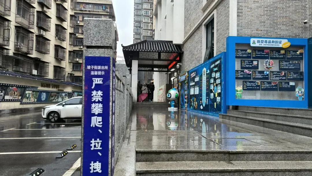 下雨的坡子街,人少了,派出所门口像是躲雨不像是打卡。
