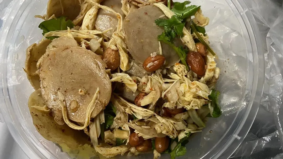 好心人推荐的满姨老三样,特别推荐的猪肉拌面,吃上了。店铺11:30营业,我11:15就吃上。店里其他东西都还在准备,吃碗面开开胃。猪油味儿不重,清爽,8元。