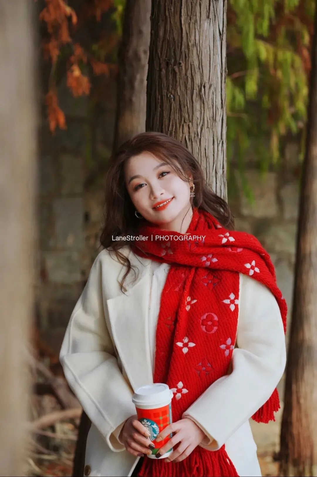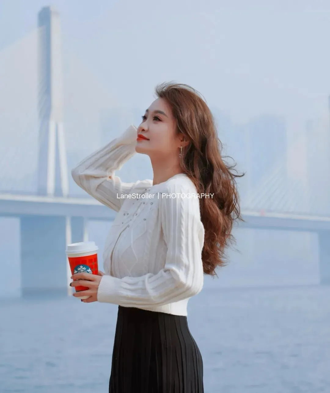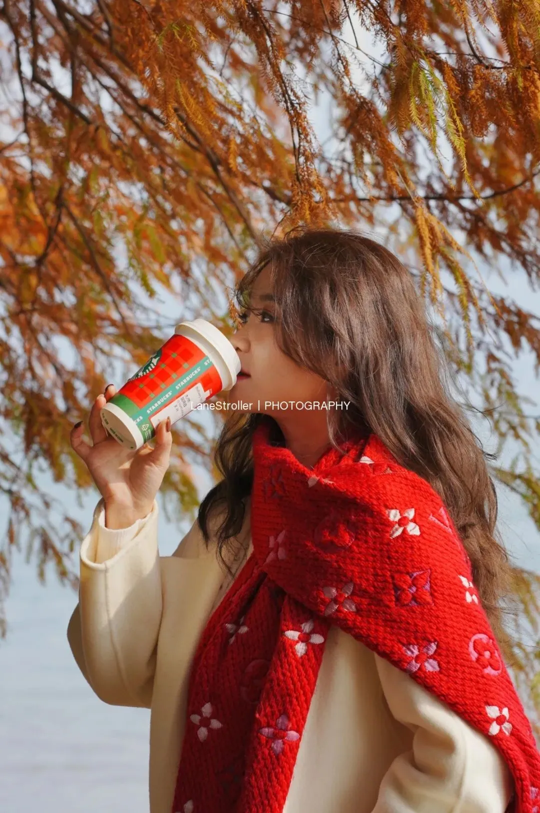 手持咖啡杯,在寒风中微微呵气的瞬间