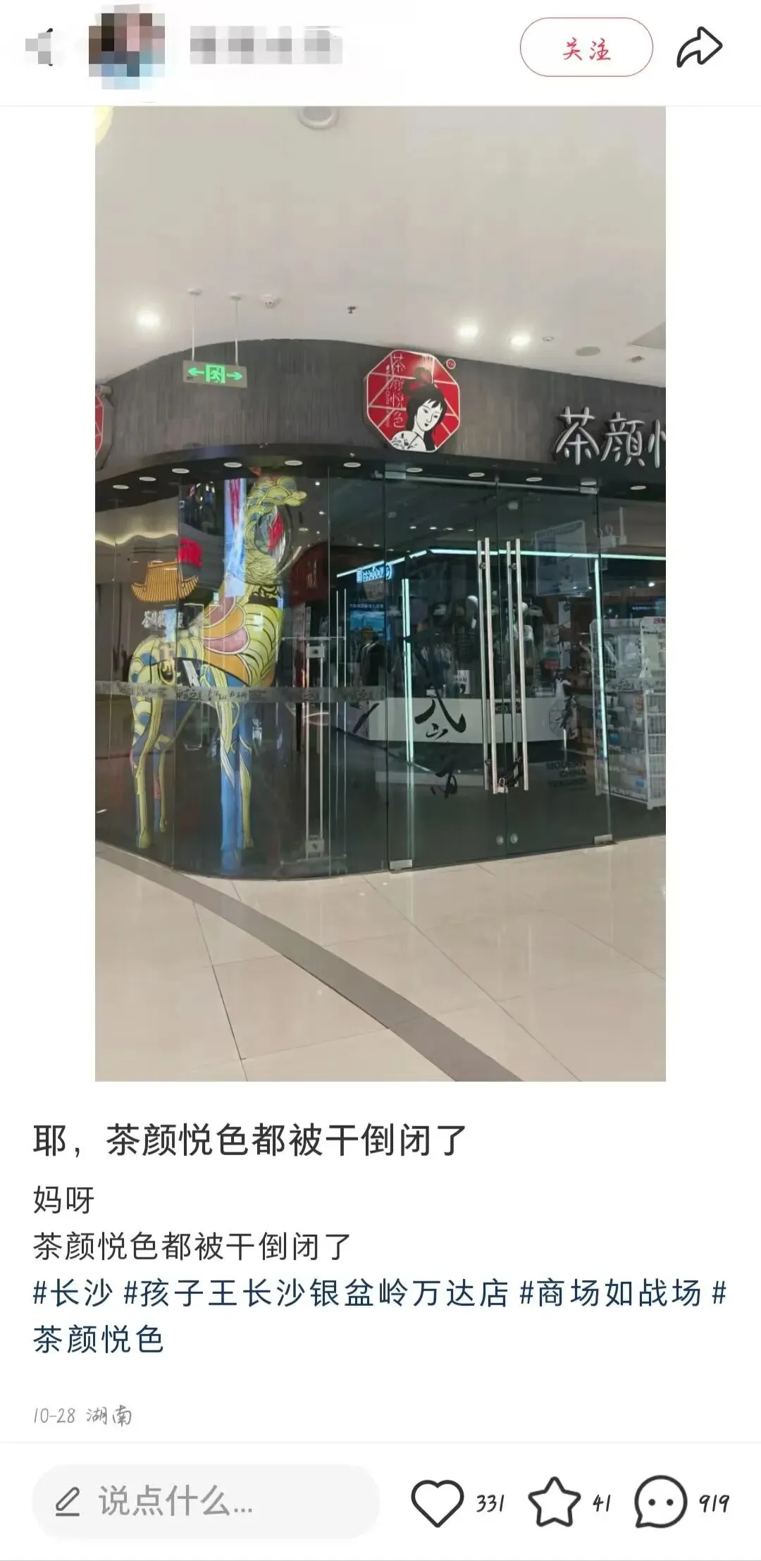 不曾想近十年光阴过去,一切物是人非,商城早已改名成银盆岭万达广场,驻扎在一楼的茶颜老店则悄然锁上大门,于用户们未察觉时拉下帷幕。来源:长沙日报