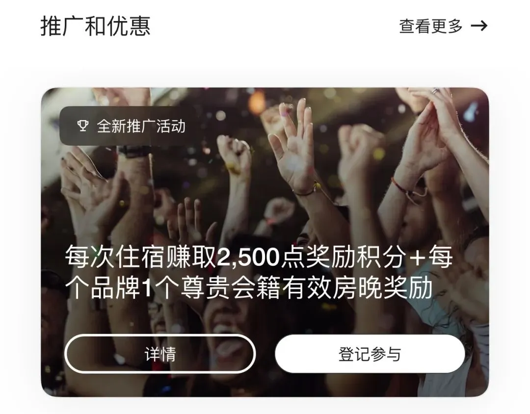 👉每入住一个全新的酒店品牌,额外多 1 个尊贵会籍有效房晚,品牌越多,房晚越多
