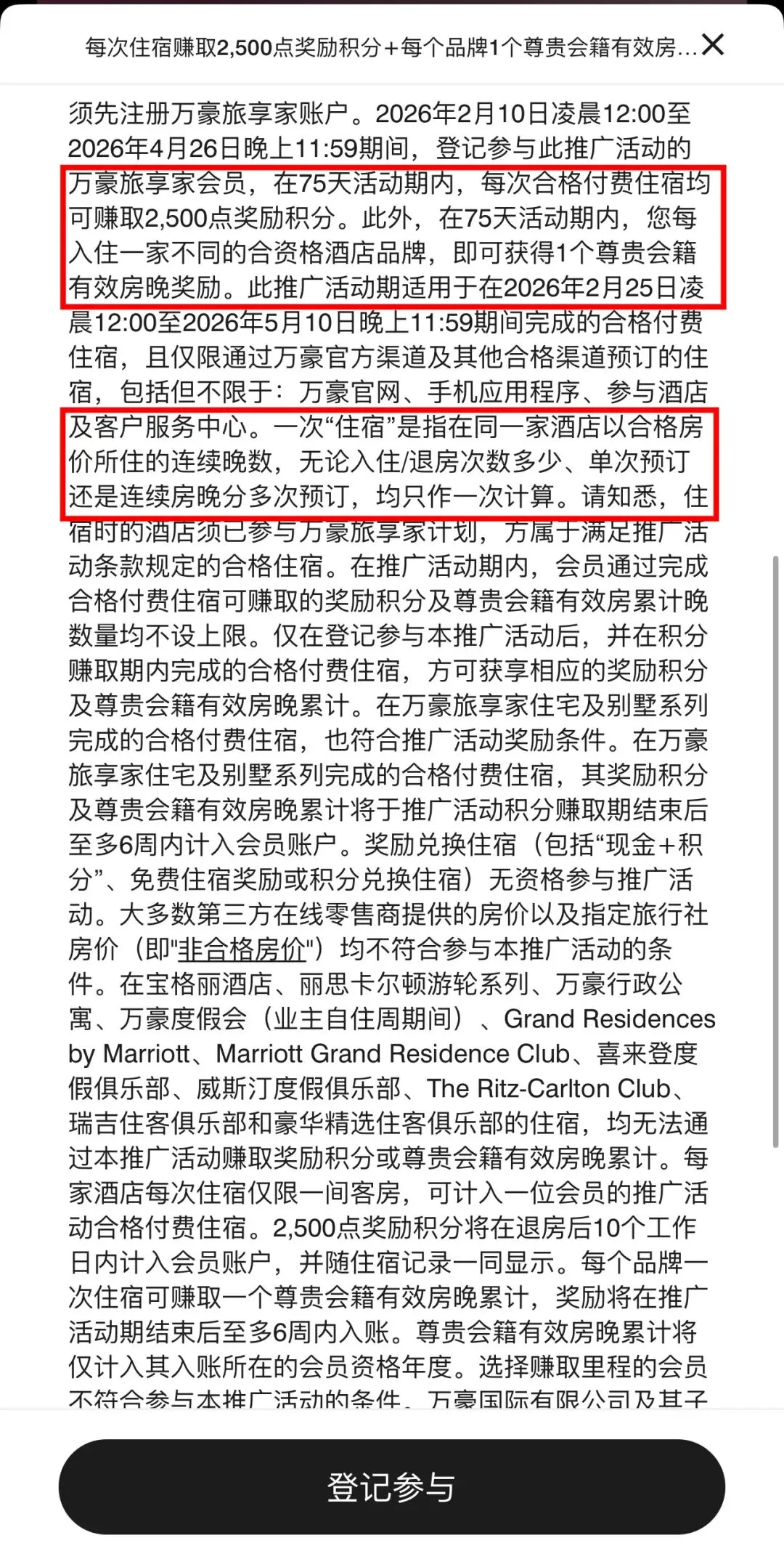 👉每次(不论几晚)合格付费住宿,都能拿 2500 点奖励积分,次数不设上限