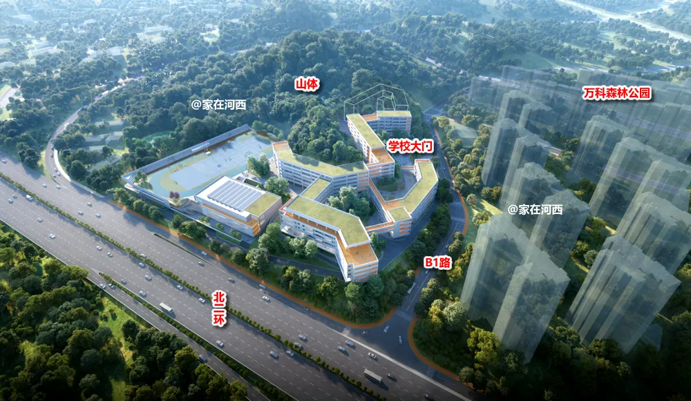 位于长沙万科森林公园的雅礼实验金星中学近期取得重要建设进展。经过前期挖山整地,目前该校教学楼已在山顶拔地而起,标志着校园建设进入实质性阶段。该校选址颇具特色,几乎建在半山腰上,比西二环路面高出不少,校园视野开阔。学校背靠一片绿色森林,环境优美,大门朝东面向B1路,为万科森林公园业主子女就学提供便利。作为湘江新区教育局与雅礼实验中学的合作办学项目,该校规划54个班,秉承"公勤诚朴"校训,立足学生全面发展。由于校舍尚未完全建成,2025年9月学校暂借博才金星小学办学,预计2026年9月将招收第二届初一新生。