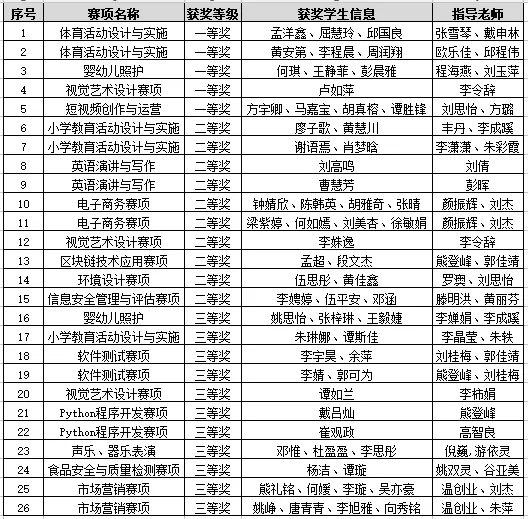 2026年度“楚怡杯”职业技能竞赛获奖情况
