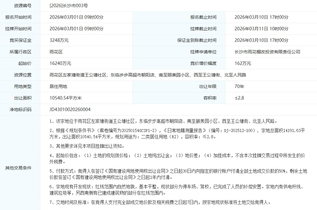 这是2026年长沙挂牌的首宗居住用地,主城区又迎来全新住宅供应。