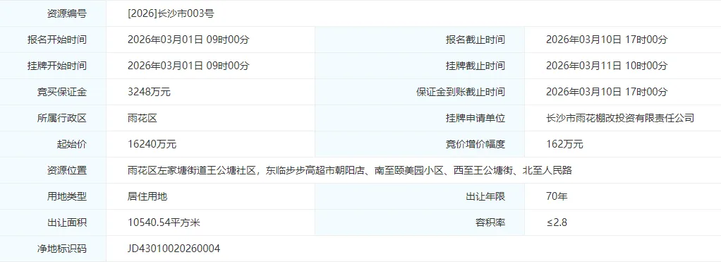 2026年长沙土地市场开局即燃,挂出了位于主城核心的王公塘地块,为2026年的土拍市场开了一个好头。