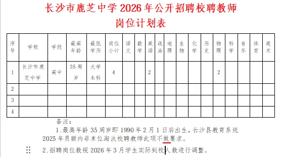 长沙市鹿芝中学现因工作需要,经研究,决定面向社会公开招聘校聘教师4名(英语2名、物理2名)