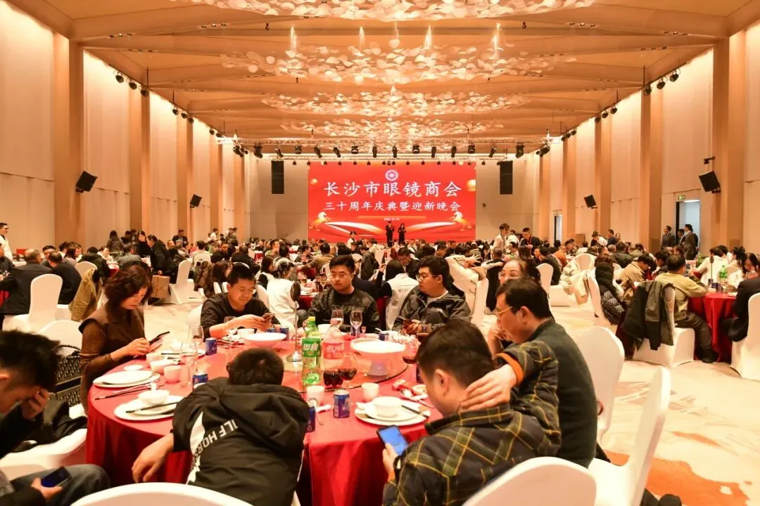 当晚,长沙市眼镜商会成立三十周年庆典晚宴盛况空前,省市政府相关部门领导嘉宾、行业商会负责人、医院眼科专家、各高中职院校眼视光专业带头人、眼视光行业同仁、会员代表等230余人共襄盛会,中国眼镜协会和全国30多家省市商协会、知名品牌产商和行业媒体纷纷发来贺电祝贺视频表达对长沙市眼镜商会换届大会暨商会成立三十周年的祝福。
