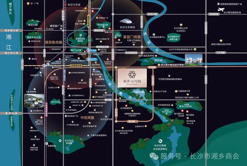 德思勤商圈、中信商圈、喜盈门商圈,三大商圈环伺,拥揽缤纷多彩的商业配套;中南大学湘雅医院新院区近距离,资优医疗配套,为健康保驾护航。