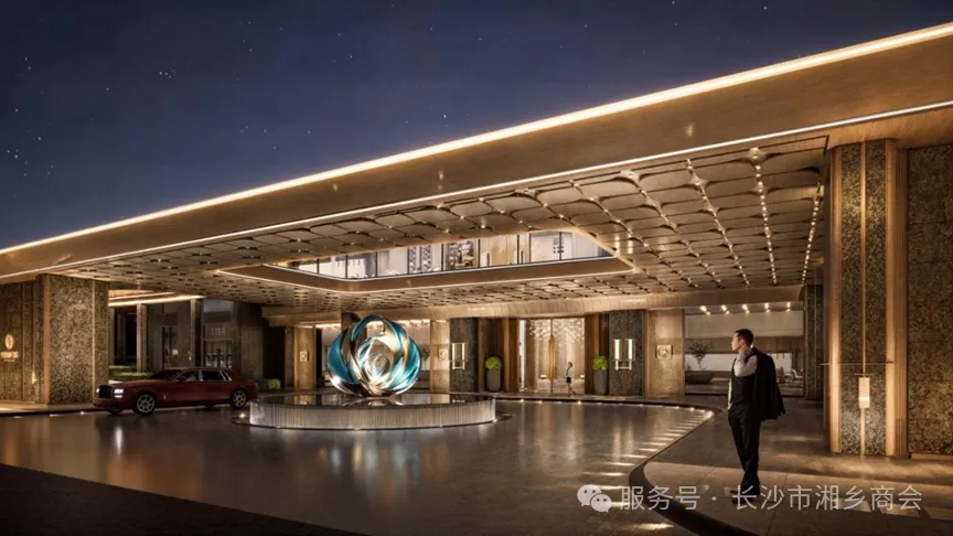双入户大堂承启尊荣:约270m市政绿轴串联环岛式落客,自然式酒店度假体验。