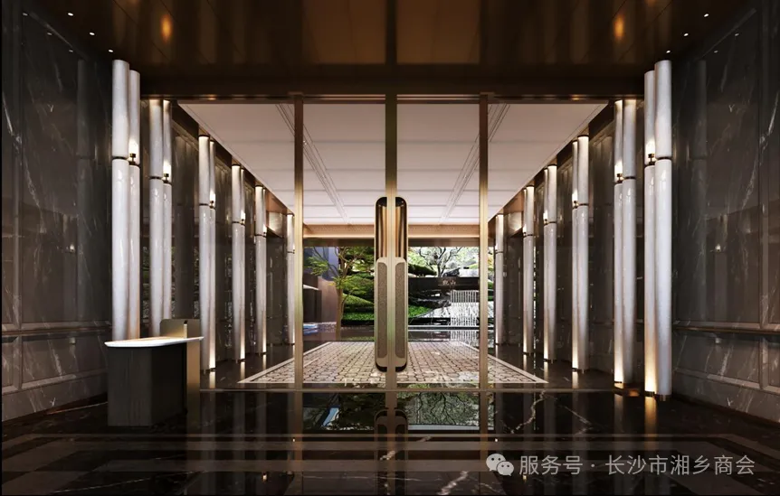三重臻装入户门楼:地下门厅、首层门厅、私人电梯厅,一进一礼,敬呈归家至高礼序。