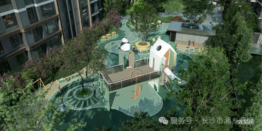 全龄段园区:在园林间设置包含会客、康养、健身、游乐等休闲设施,打造全龄生活聚场。