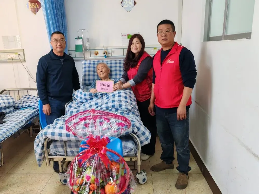 街道退役军人服务站联合社区一起到开平市中医院慰问抗美援朝老兵戚焕文。戚伯十五岁入伍,十七岁入党,从军三十四载,半生戎马,始终对党忠诚,曾参加解放战争和抗美援朝战争,一生深爱戎装,其妻子也是退役军人。何永富与老兵亲切交谈,详细了解其健康状况和家庭情况,感谢他们夫妻为保家卫国做出的贡献,叮嘱他们要好好保重身体,保持乐观心态,享受晚年生活,有任何困难要及时向街道相关职能部门反映,并送上慰问金、慰问品和新春祝福。