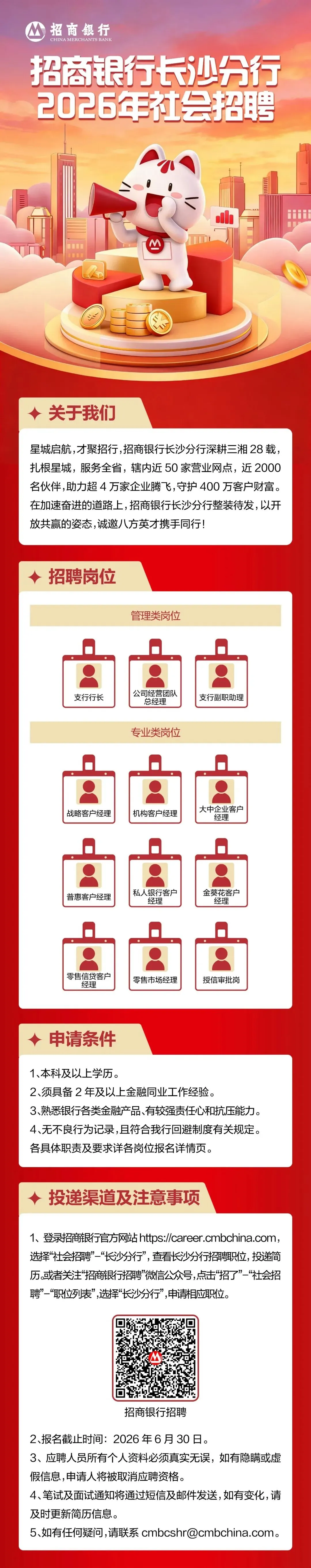 星城启航,“湘荟”招行——招商银行长沙分行2026年社会招聘