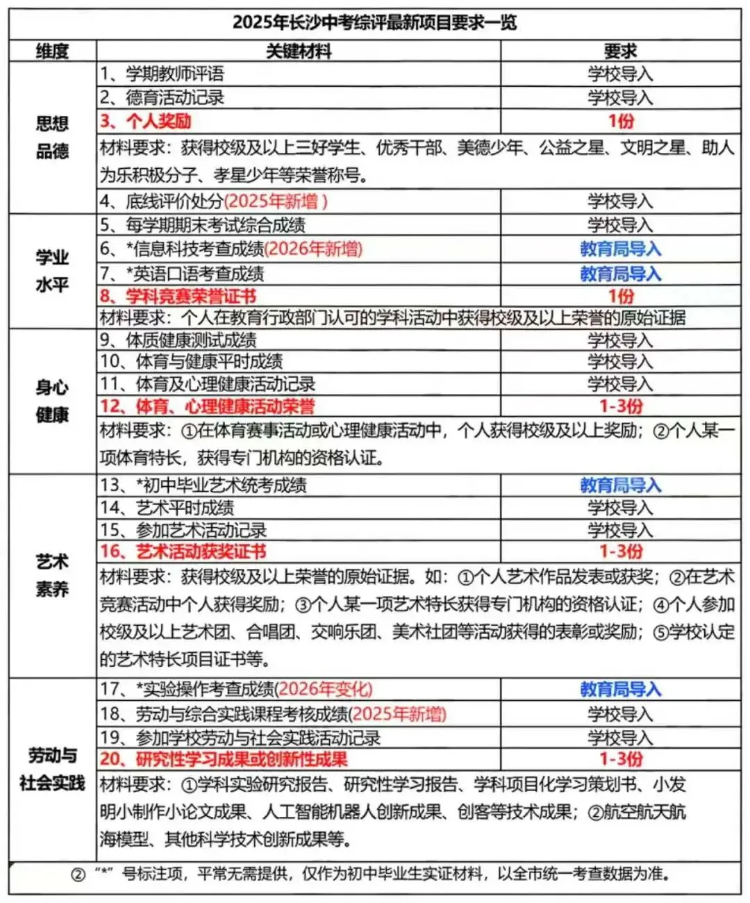 综评所需材料一直在精简。2024年,长沙初中毕业综评已经进行过一次较大精简,2025年,长沙县取消综合综评,长沙城区也再次进行了综评材料精简,需要学生上传或遴选的材料仅为5份。2026年综评或许还会有调整,但不论如何调整,都是往减轻学生和家长负担的方向调整的。家长们也并非是不配合综评材料的收集,只是希望不重复做工,将时间还给家长和学生。