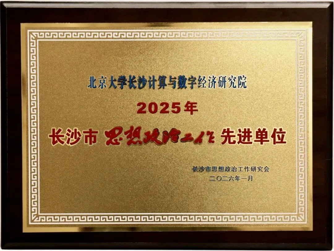 近日,北京大学长沙计算与数字经济研究院(以下简称“研究院”)获评2025年“长沙市思想政治工作先进单位”。该荣誉是对研究院持续深化思想政治建设、推动党建与科研事业深度融合的充分肯定。自成立以来,研究院始终坚持以党的创新理论为指导,紧紧围绕服务国家战略和地方发展大局,将思想政治工作系统融入科研创新、人才培养和成果转化全过程。通过组织专题学习、开展理论研讨、打造特色内刊《智库观察》、实施“党员讲党课”等形式,不断强化理论武装,推动党的路线方针政策在科研实践中落地见效。研究院坚持以思想政治工作引领科研方向,围绕先进计算、人工智能等重点领域开展协同攻关,推动多项科研成果实现转化应用;通过联学联建、高水平学术交流等方式,构建产学研协同创新生态;依托平台资源和金融支撑,助力一批科技项目加速孵化成长;注重推动北大文化与湖湘精神交融互鉴,将科研一线转化为生动鲜活的思政课堂。下一步,研究院将以此次获评为新起点,持续发挥思想政治工作的引领和保障作用,为长沙建设全球研发中心城市贡献力量。