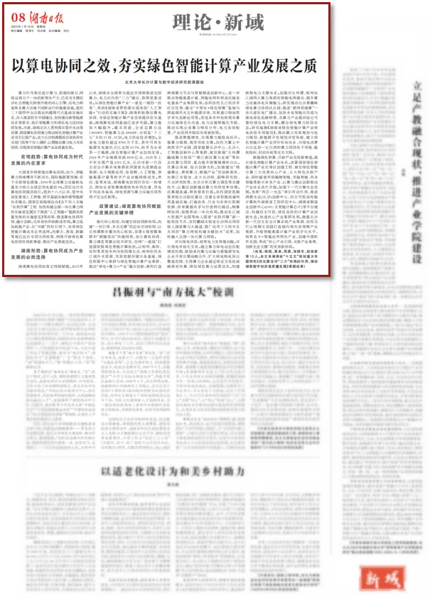 研究院在《湖南日报》发表关于算电协同与绿色智能计算产业发展的署名文章