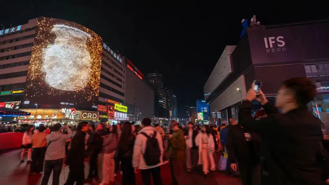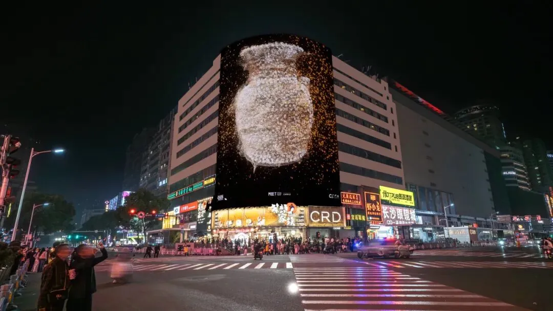 当作品在长沙核心商圈公共大屏展映,历史诗文、器物意象与城市夜景自然叠加,观众在日常流动的公共空间中,与文化记忆重新建立连接。“记忆共存”主题在此获得了具象化呈现,传统文化以数字方式融入当代城市生活。