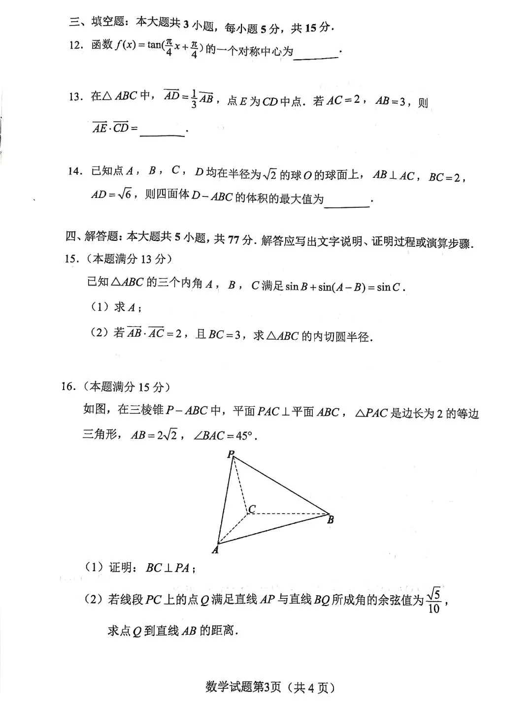 2026年长沙市适应性考试数学试卷,虽然试卷有小瑕疵,但瑕不掩瑜,