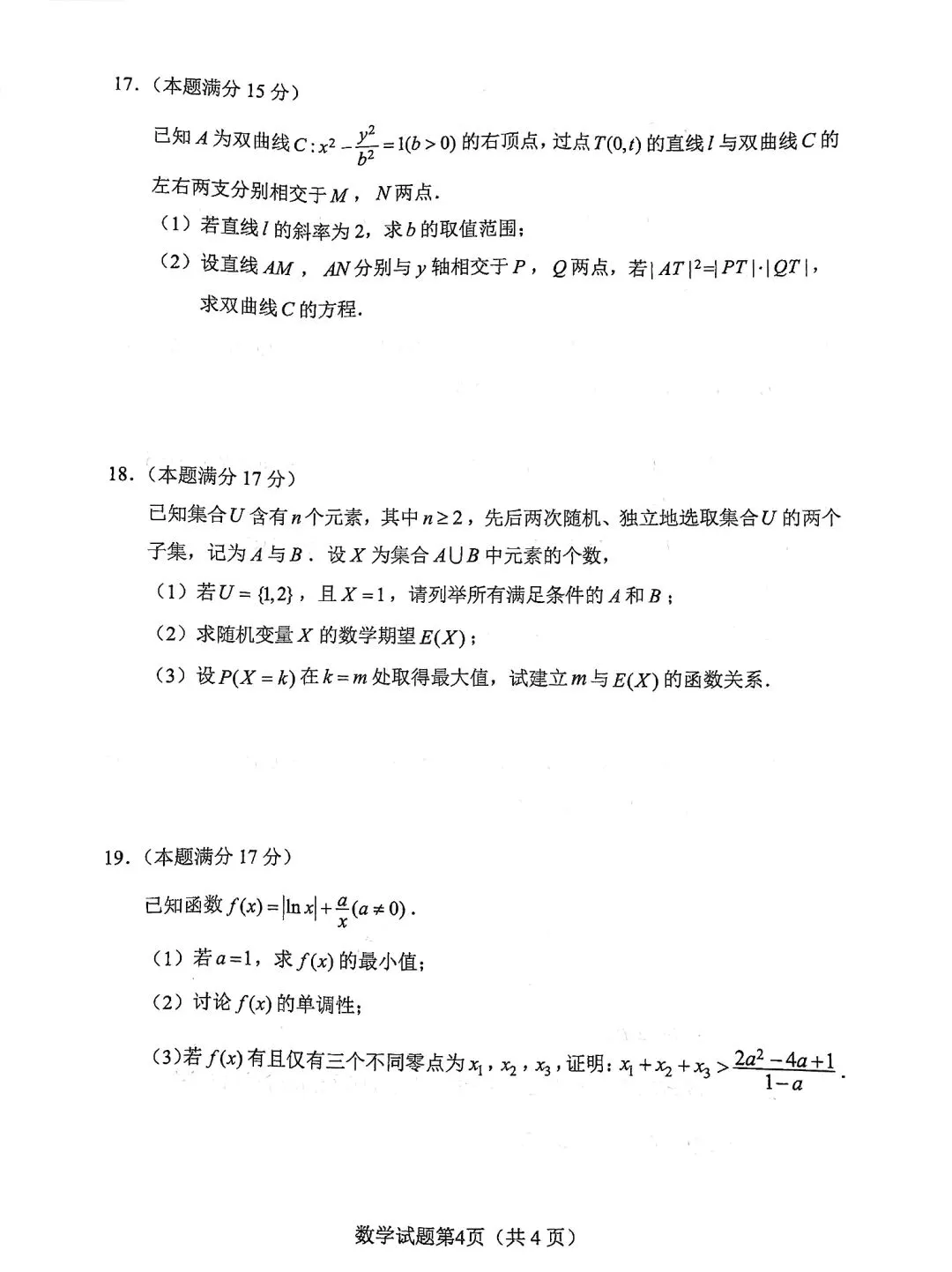 长沙市2026年高三适应性考试 数学试卷