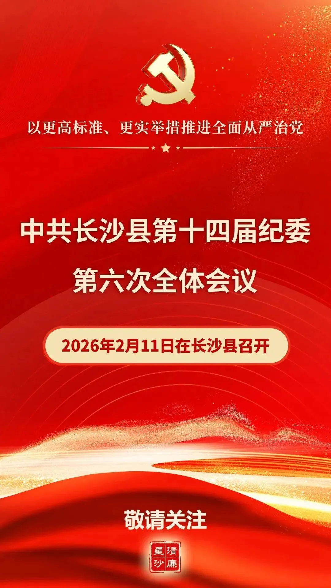 >中共长沙县第十四届纪委第六次全体会议将于2026年2月11日召开