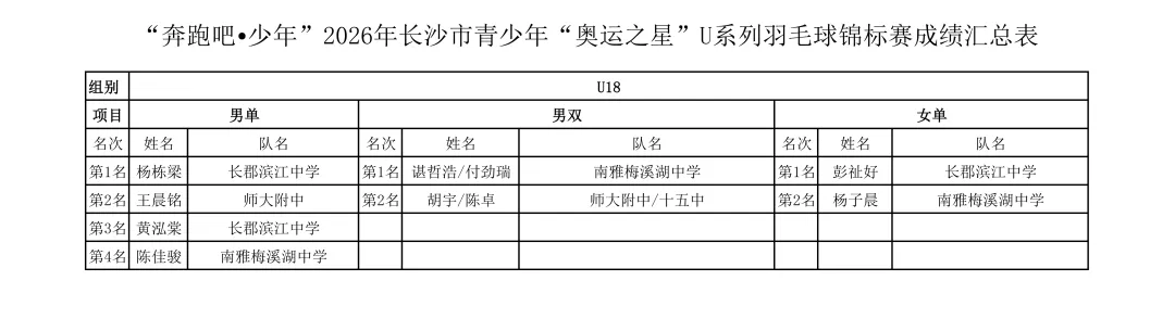 赛事不仅为我市青少年羽毛球爱好者搭建了一个展示自我、切磋球技的平台,更对选拔储备优秀羽毛球后备人才起到了积极的促进作用。据悉,本次赛事的竞赛成绩将作为长沙市羽毛球队选拔组队,参加2026年湖南省第十五届运动会羽毛球比赛及2026年省青少年羽毛球锦标赛的依据。