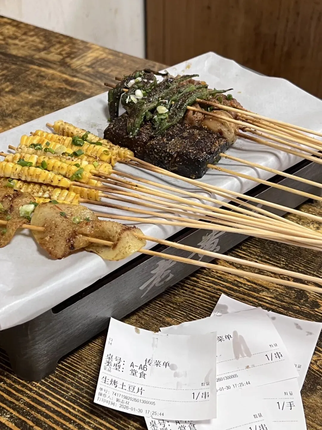 放假前夕突然放松了起来,绕路来吃一家烧烤老店,排队概率高,特意早点来,当晚餐了。