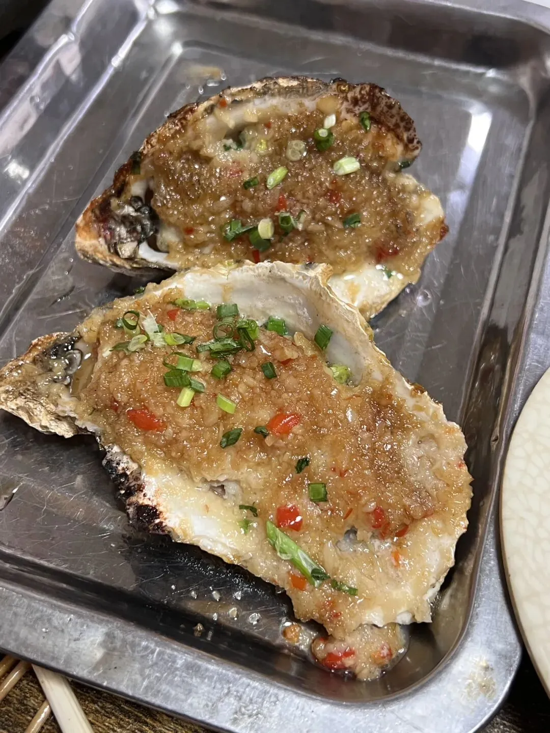 店门口停车场需要收费,店家只有折扣券。推荐停街口位置的停车场,小区里,可以免费领停车券!更划算。按自己喜好点的,招牌也都试了下,整体来说还不错,辣度合适,是小朋友也能吃的那种。喜欢土豆片,很香火候掌握得不错。樟树港辣椒一般,有点发苦。生蚝非常推荐!超级新鲜,很好吃,蒜茸沫也很美味,吃完拌烧烤一绝哈哈哈。鱿鱼剪开来了,适合分享,用来下酒很不错,弹牙口感但记忆度不够,一般般吧。来得早不排队,不错,店里空调效果还可以。好像还有二楼,老板很热情。蛋炒饭是我爱的那口,巨巨巨香,但一定要趁热吃,凉了味道有差。好吃必点!翅好吃,好像是叫大拐弯!很嫩很香,没有柴的部分,建议人手一串!价格整体来说就是夜宵均价,比较高。人均90+吧,长沙夜宵一直贵贵的。藏在市中心的老店,味道来说整体是值得推荐的!
