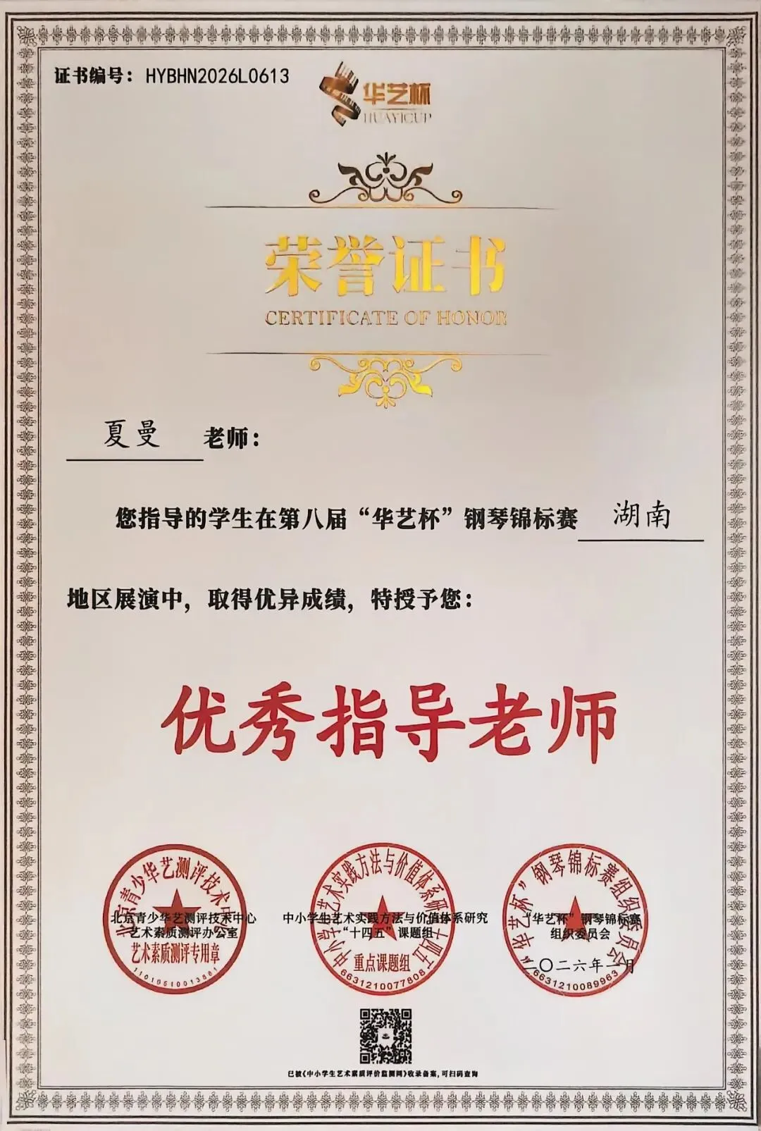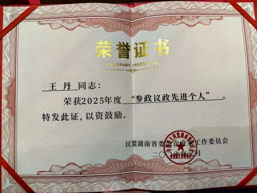 近日,本会副会长、湖南大湘人力资源集团董事长王丹获评民盟湖南省委会企业家工作委员会2025年度“参政议政先进个人”。近日,本会会员、湖南云天律师事务所律师高级合伙人向雨婷获评长沙市律师协会颁发的“优秀律师”光荣称号。近日,本会副会长、湖南中科工程检测有限公司董事长伍锡仁,本会理事兼副秘书长、长沙贤知堂企业管理有限责任公司董事长何凯,本会会员、湖南海牧农业开发有限公司总经理曹海强被民盟长沙市委会授予“爱心大使”称号。近日,本会会员、长沙朗迪艺术中心负责人夏曼被湖南省群众文化学会键盘音乐专业委员会聘请为“第五届理事会常务委员”,她指导的学生在第八届“华艺杯”钢琴锦标赛湖南地区展演中,取得优异成绩,被授予“优秀指导老师”荣誉称号。