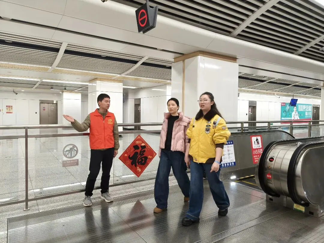 与此同时,市城市公共交通事务中心的党员干部化身志愿者们,穿梭于地铁站厅各处,协助旅客购买车票、耐心解答各种疑问、帮助乘客搬运行李、引导乘客进站有序乘车,用实际行动为广大群众出行保驾护航。