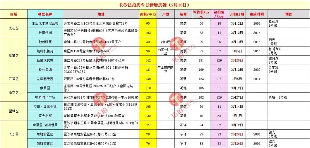 (注:所有房源信息均来自今日最新挂牌,价格与时间以法院公告为准)