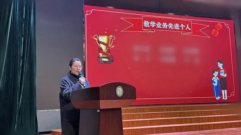 教育科研与教学业务先进个人由徐惠琴老师宣读获奖名单,龚校亲自为在教研与教学一线辛勤耕耘、成果显著的老师们颁奖。