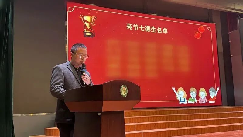 孙校宣读亮节七德生名单并颁奖,表彰那些在品德修养、行为规范方面堪称楷模的优秀学子。