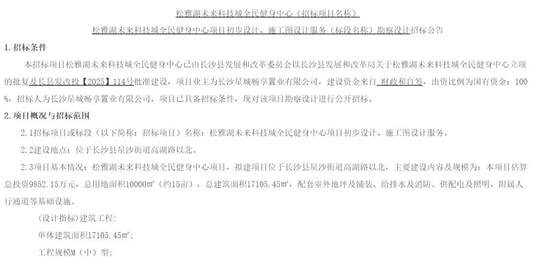 🏟️项目全称:松雅湖未来科技城全民健身中心