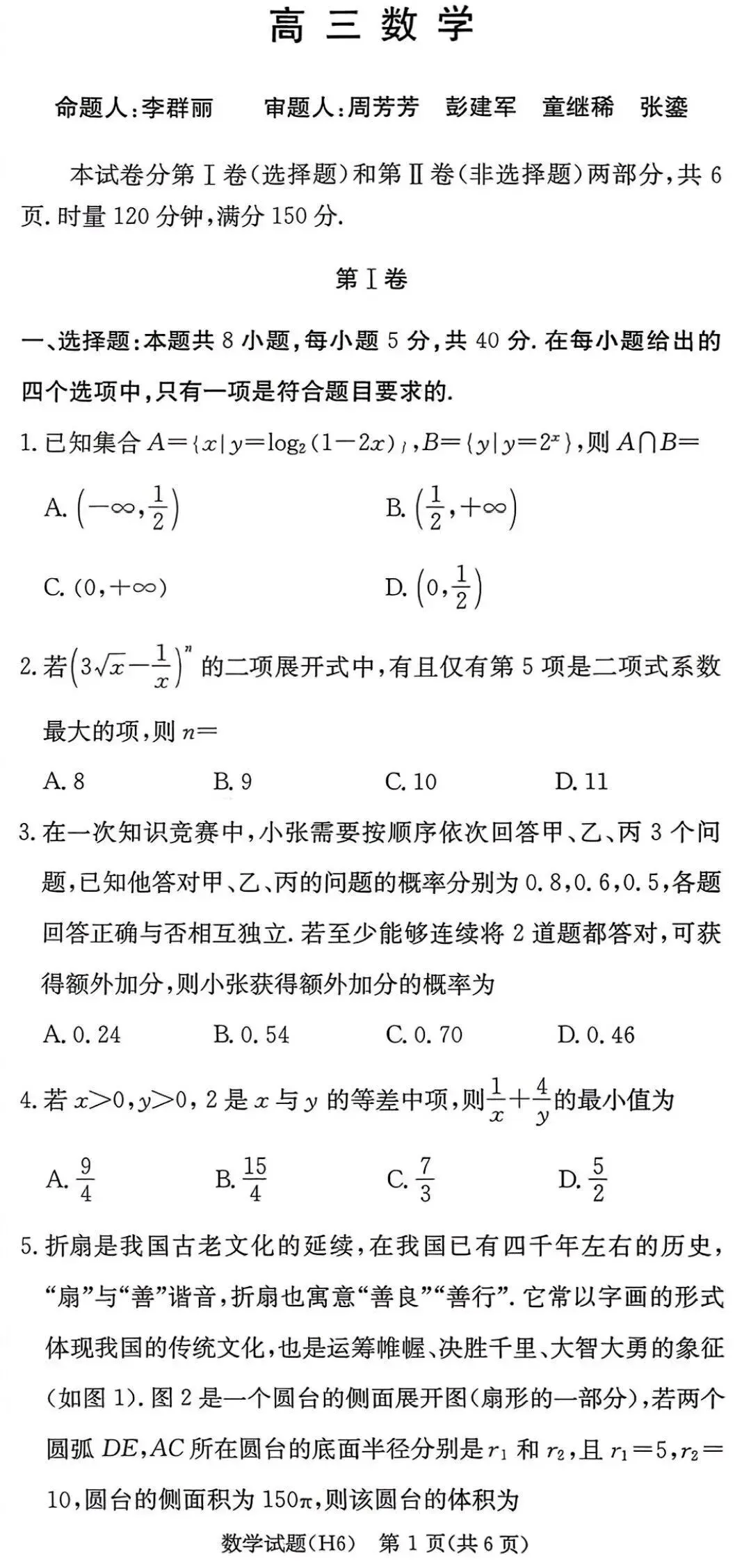 6.「2026年秋高三数学期终考模考试题与解析汇编」
