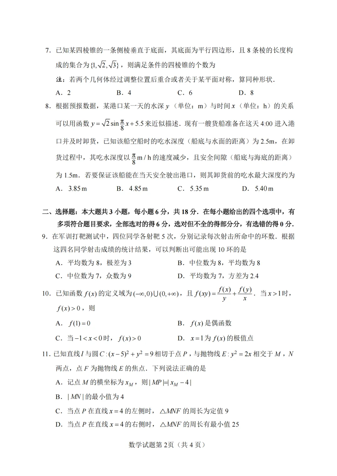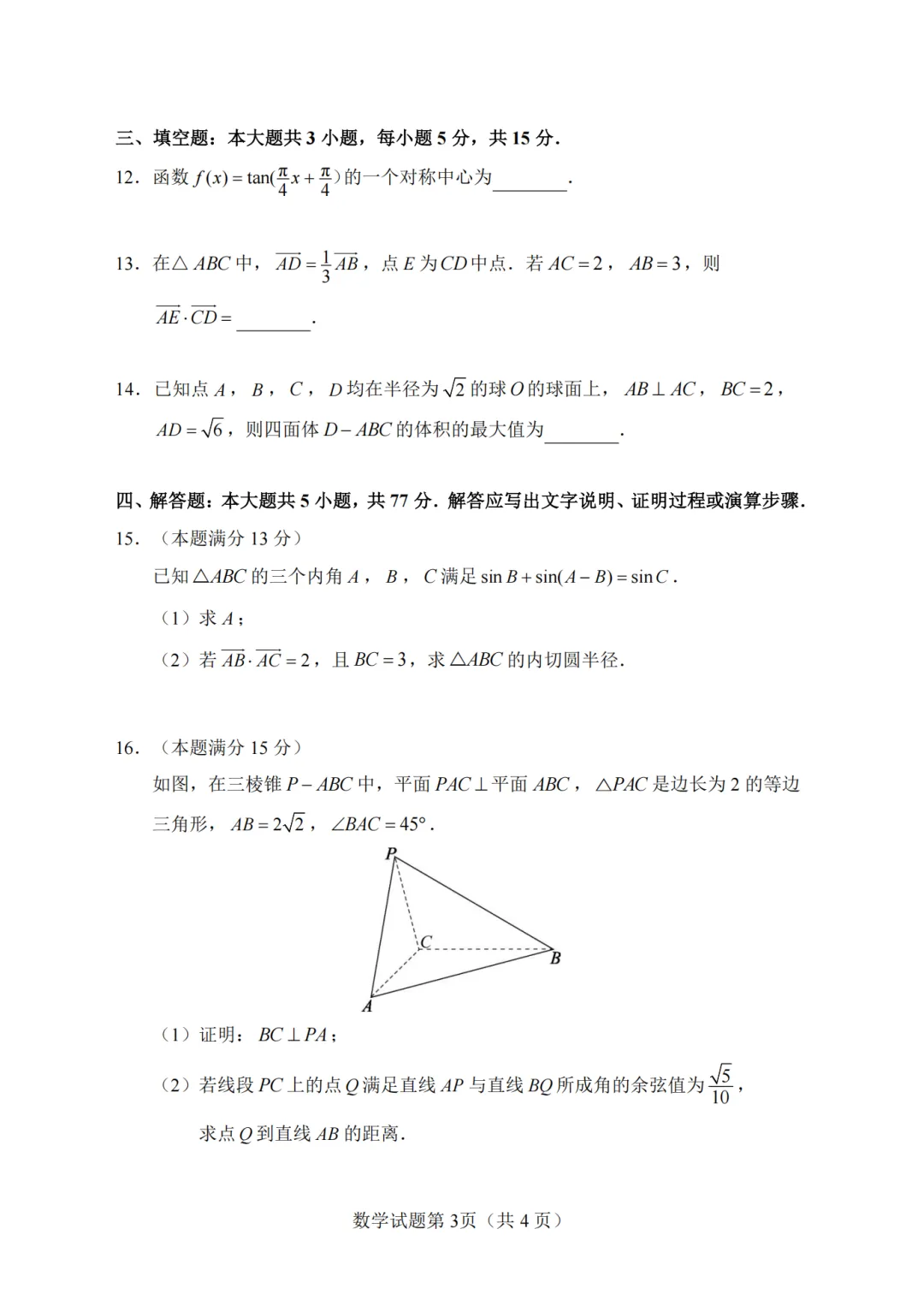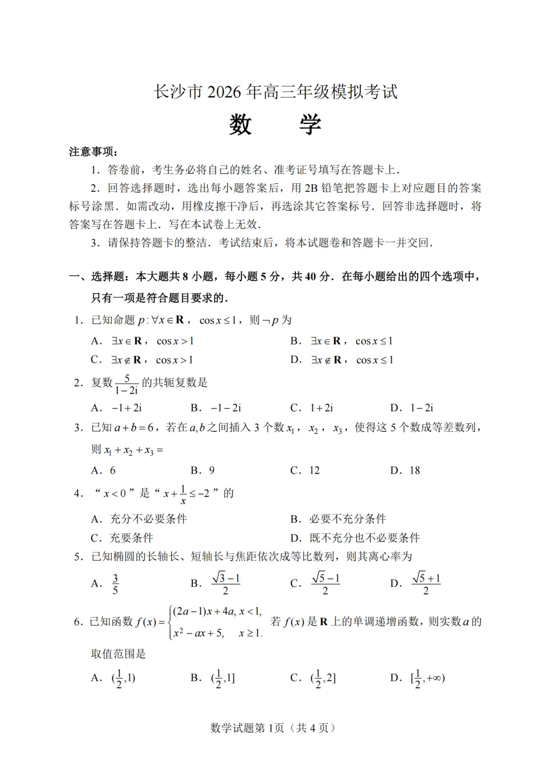 >湖南省长沙市2026届高三上学期模拟考试数学试题