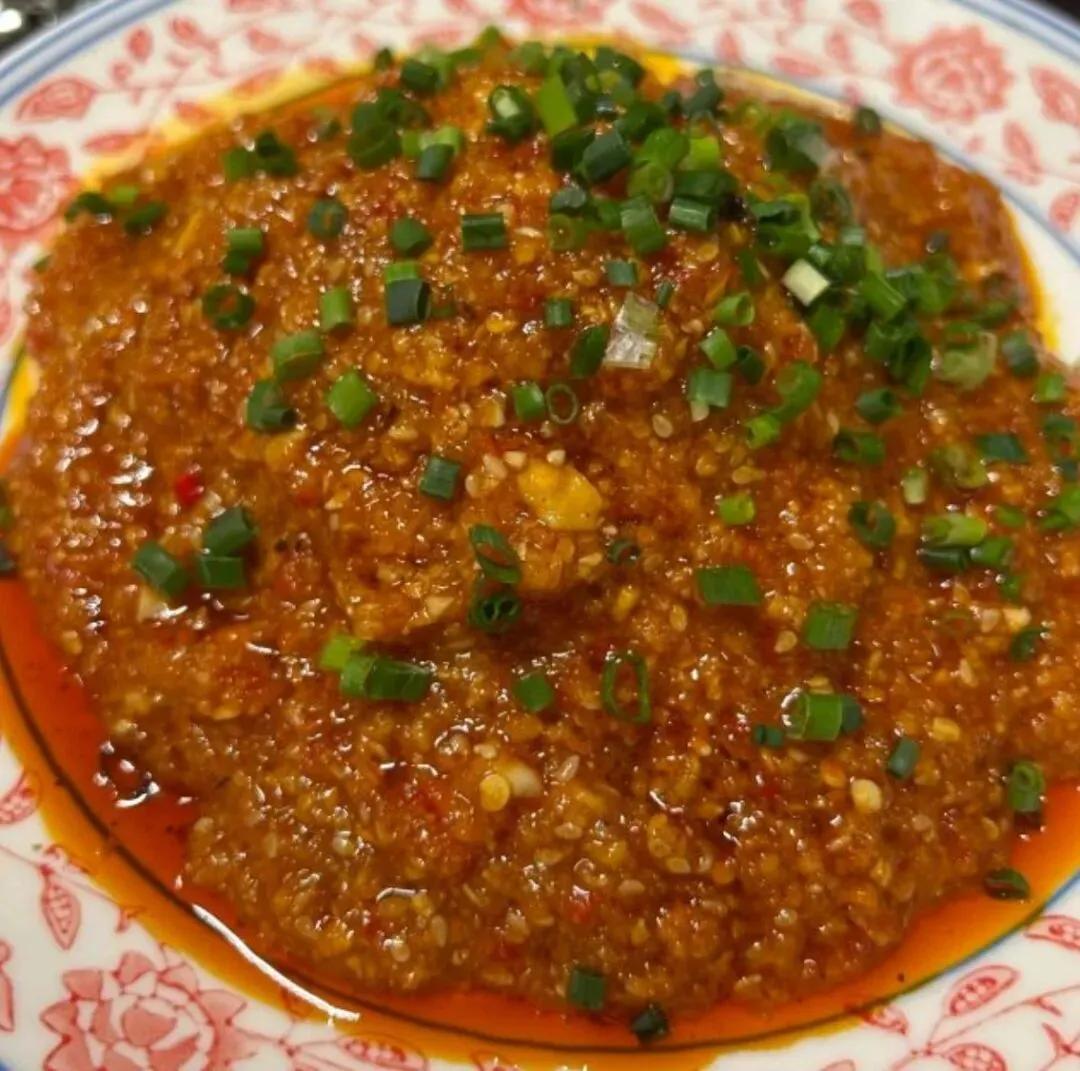 肉片薄如纸却完整不碎,裹满蒜香红油,蒜香浓郁、红油醇厚,配上清爽黄瓜丝,脆嫩解腻,一口打开食欲,重口味餐桌里的温柔担当。