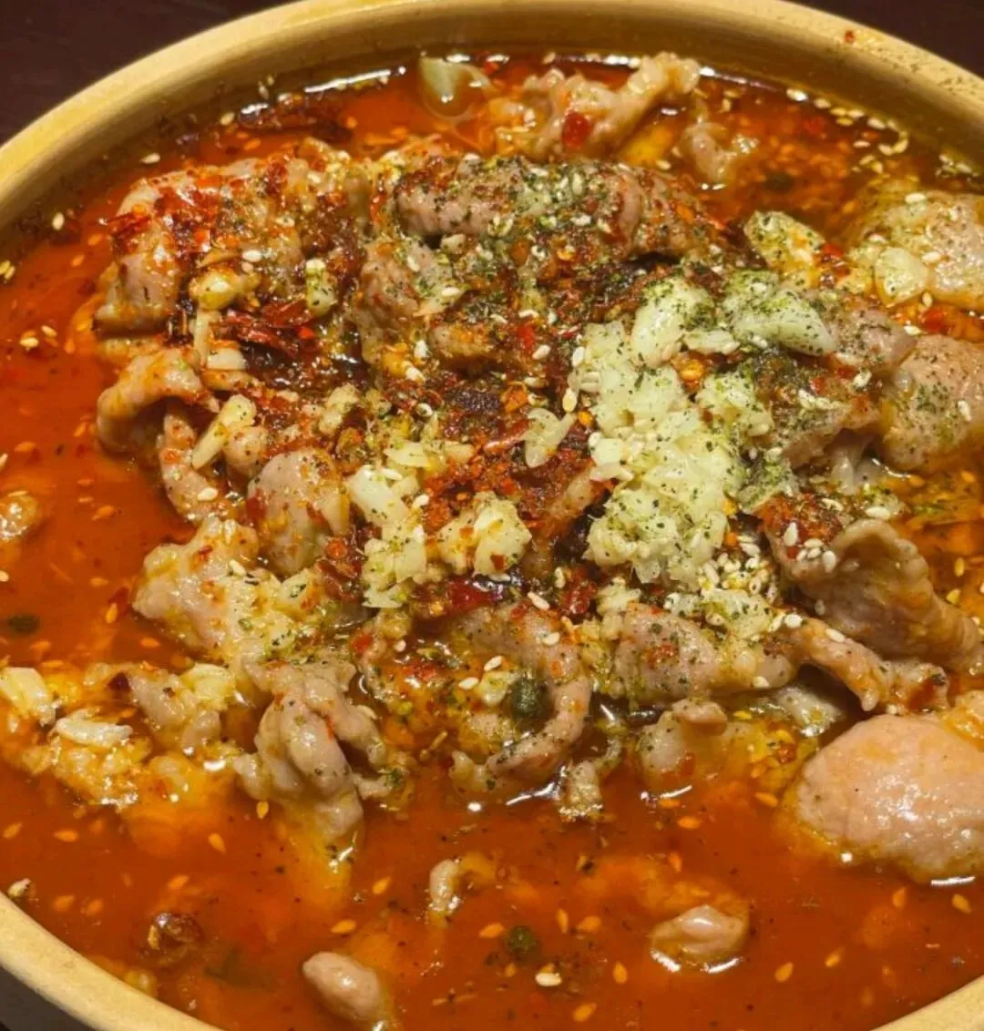 不是那种菜多肉少的“套路款”,而是肉片堆成小山,蔬菜只做薄底,麻辣入味、肉片滑嫩,连配菜都吸满汤汁,吃到最后常常是:肉够了,菜不够吃。