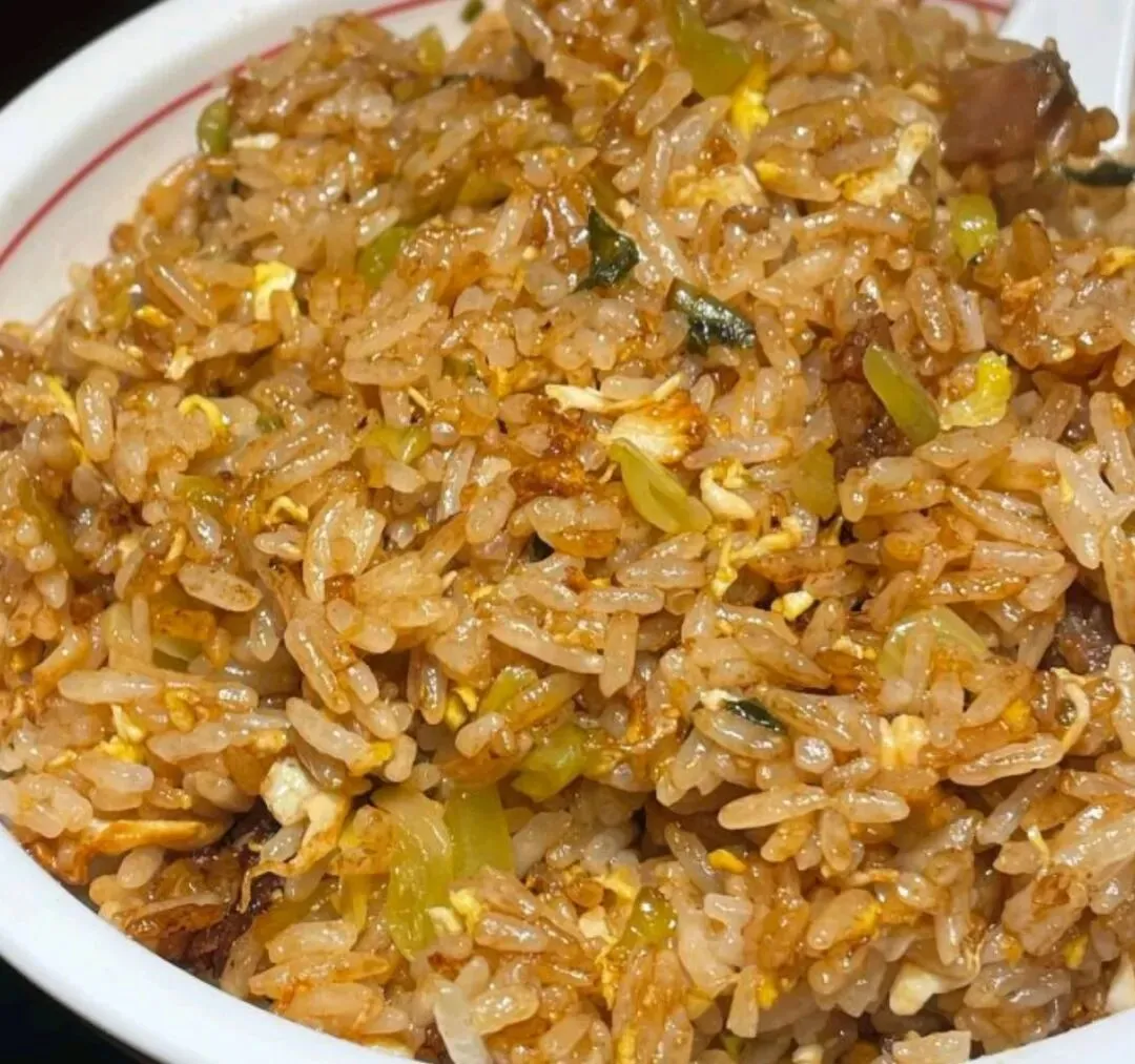 米粒干爽入味,腊肠咸香、酸菜解腻,锅气很足。