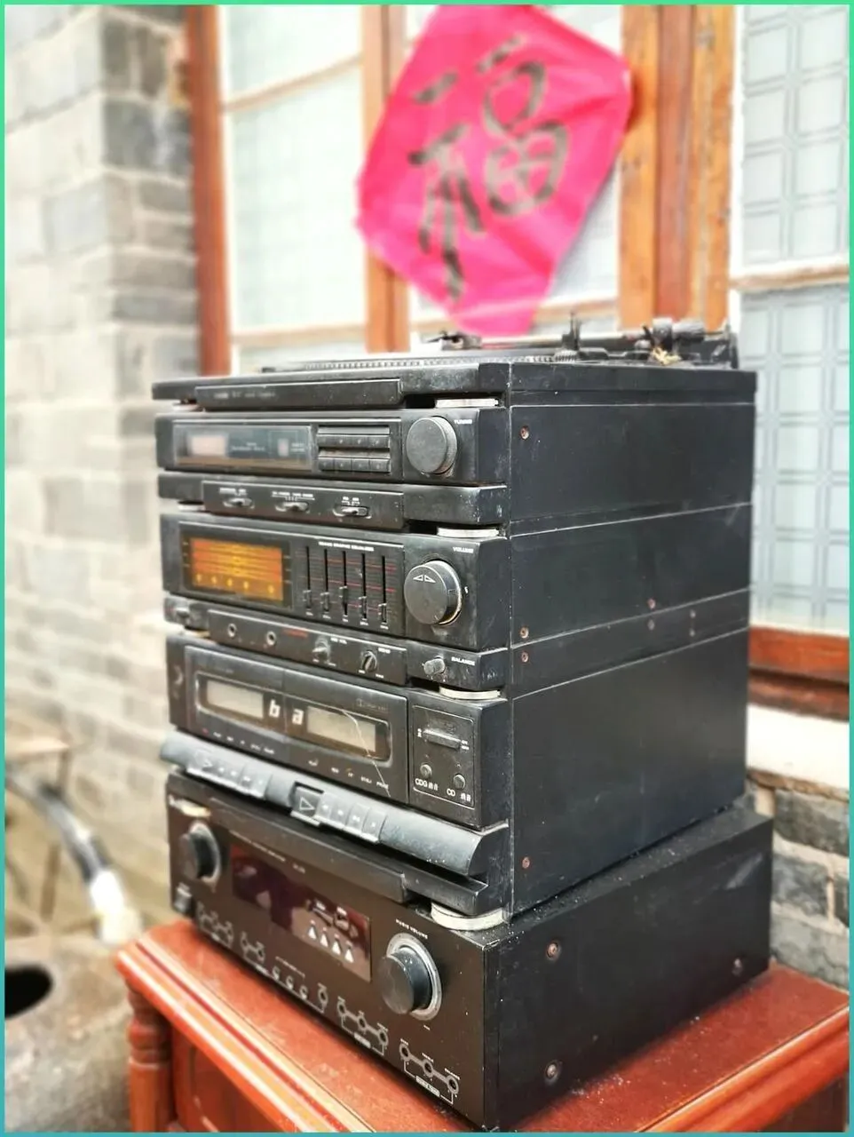 最后这个大块.头组合音.响.,谁家.客厅要.是摆.一套,那可太有面子了! 收音机,卡带机,CD.机,功放,.一层一层叠起来,看着就觉得高端大气.。