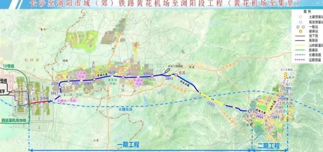 长浏快线是连接长沙市区和浏阳的市域轨道线,采用磁悬浮技术设计。 线路全长约45公里,设置12座车站,设计最高时速160公里。 在浏阳段,金阳中心站和经开区站的主体桩基施工已完成,地下段竖井工程于2025年完工。 长沙段的征地工作基本结束,正在进行场地平整。 工程招标文件显示,全线计划在2029年通车,但金阳新城到浏阳段可能提前至2027年试运行。 列车运行时速测试数据表明,从长沙到浏阳的全程时间可控制在30分钟。