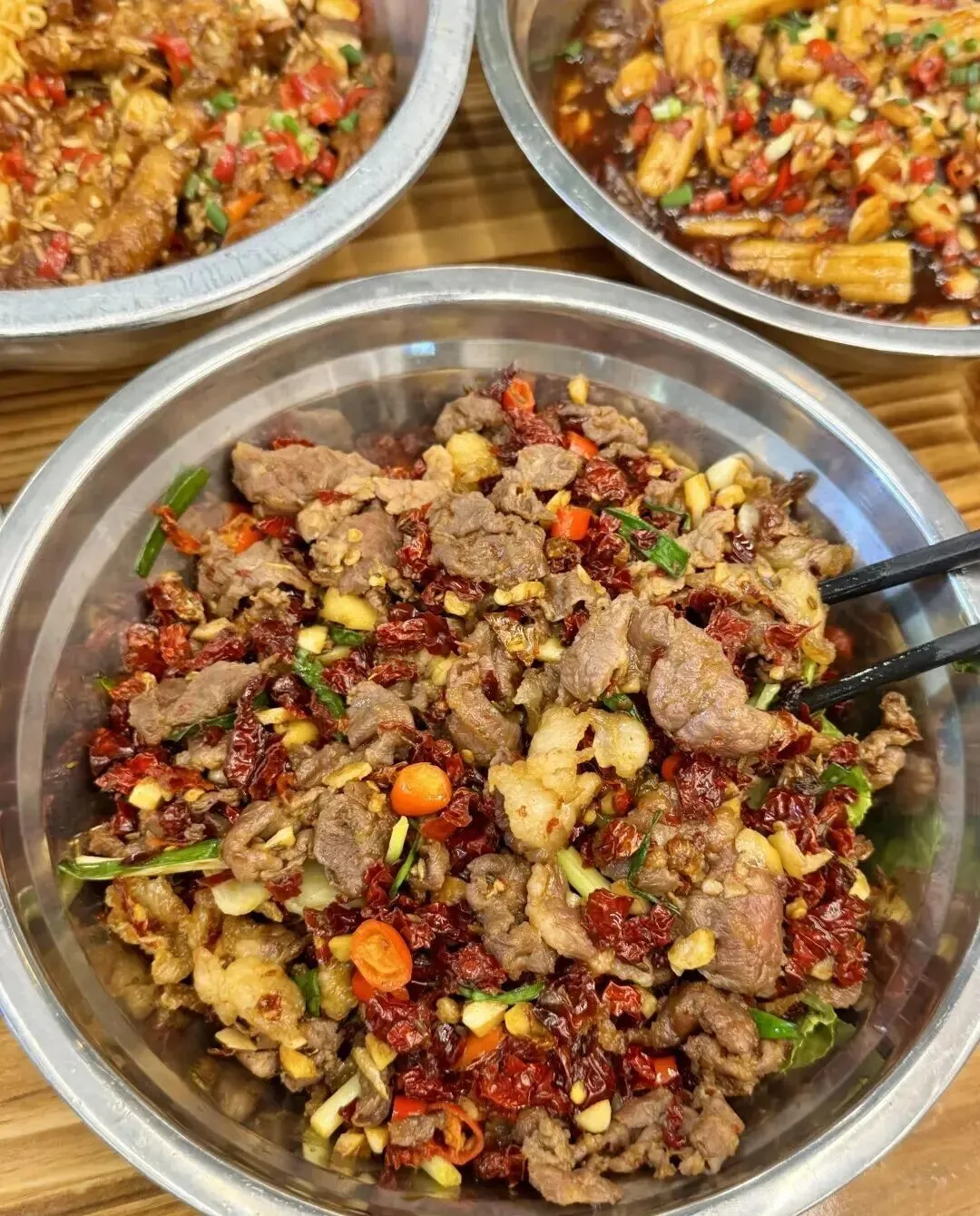 衡阳脆肚脆得很到位 , 咬下去咯吱咯吱的 , 调味也刚好。 生烧排骨外面有一层微微的焦香 , 里面的肉还是嫩的 , 层次感很足。 五花趾炒胸口油这道菜名字听着陌生 , 但吃起来油脂和瘦肉的比例刚刚好 , 很香但不会腻嘴。